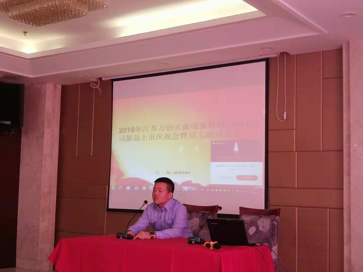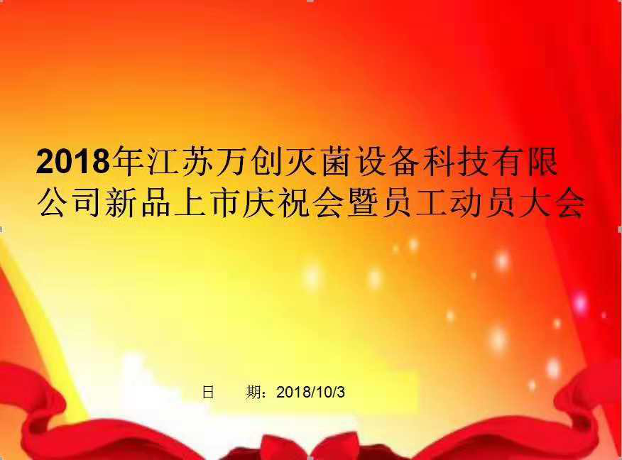 2018年10月03日,公司全体员工欢聚一堂,庆祝万创自主研发的新产品过热蒸汽粉末瞬时灭菌设备成功上市。